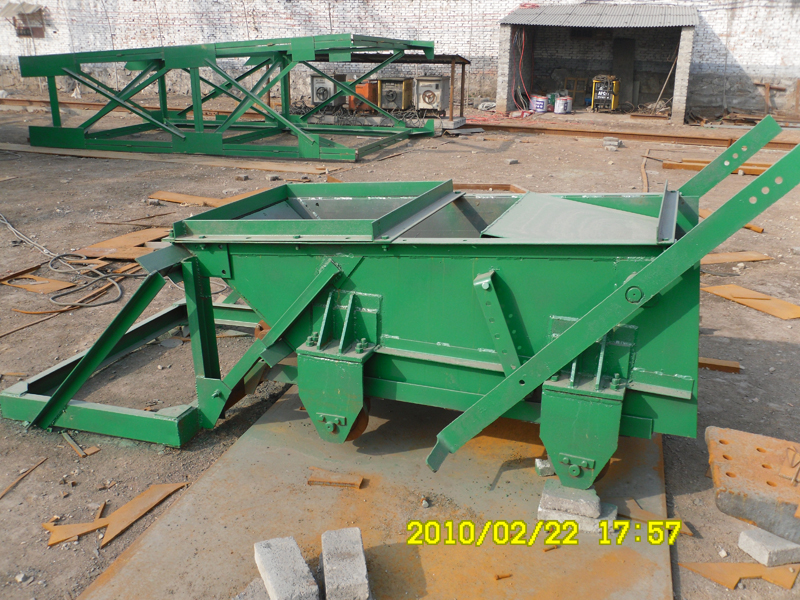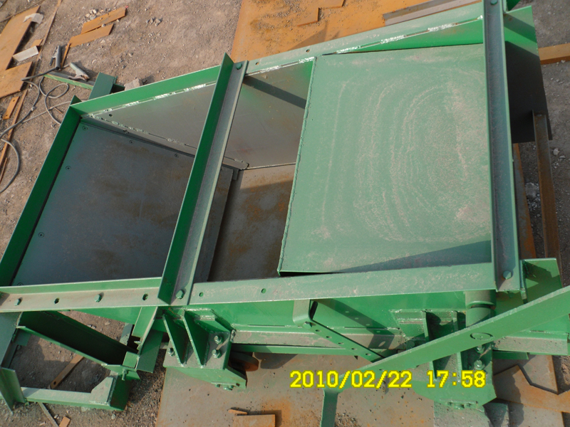 往復(fù)式給料機是一種由料斗或料倉給料的給料裝置。這種給料機的往復(fù)運動的底板安裝在料斗的下面,呈水平或微傾斜安裝,底板支承在滾軸上,由偏心軸通過連桿驅(qū)動,帶動給料機在滾軸上往復(fù)運動。閘門用來調(diào)節(jié)給料機上料層的厚度。當?shù)装逶谶B桿驅(qū)動下向前運動時,其上的物料受到向前運動的慣性力,克服物料與底板間的極限摩擦力,而向前滑移一段距離。當?shù)装搴笸藭r,新的物料又從料倉中落到底板的后端,然后重復(fù)上述過程,從而均勻地運輸物料。