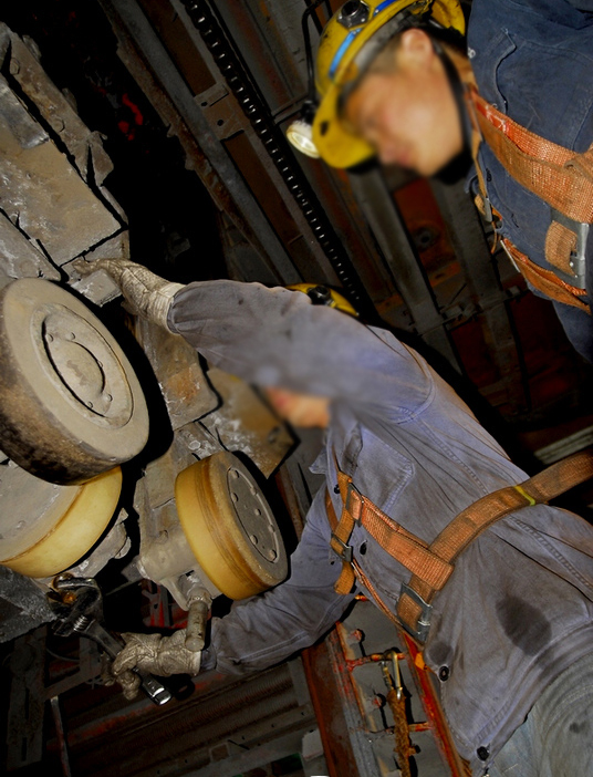 改進后的罐籠罐耳采用了封閉式結構,即使在罐籠罐耳襯套磨損以后,沒有及時更換上新罐籠罐耳襯套的情況下,運行時罐籠也不會脫離
