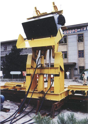 GFY型液壓傳動高位翻車機是煤礦運輸系統(tǒng)中配套設(shè)備之一,該機置于地面與礦車運輸鋼軌相接,配合MG型5T固定車箱式礦車,將裝有礦物的礦車高舉側(cè)卸于載重汽車上或其他運輸設(shè)備上。