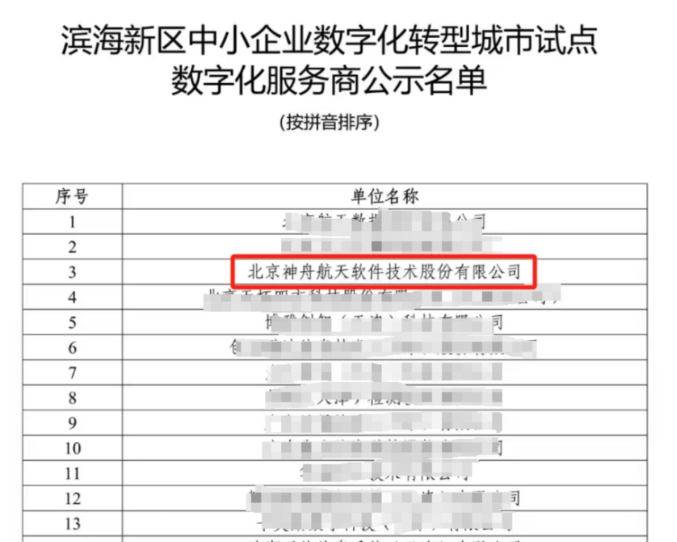 神軟公司入選“天津濱海新區中小企業數字化轉型城市試點數字化服務商”公示名單